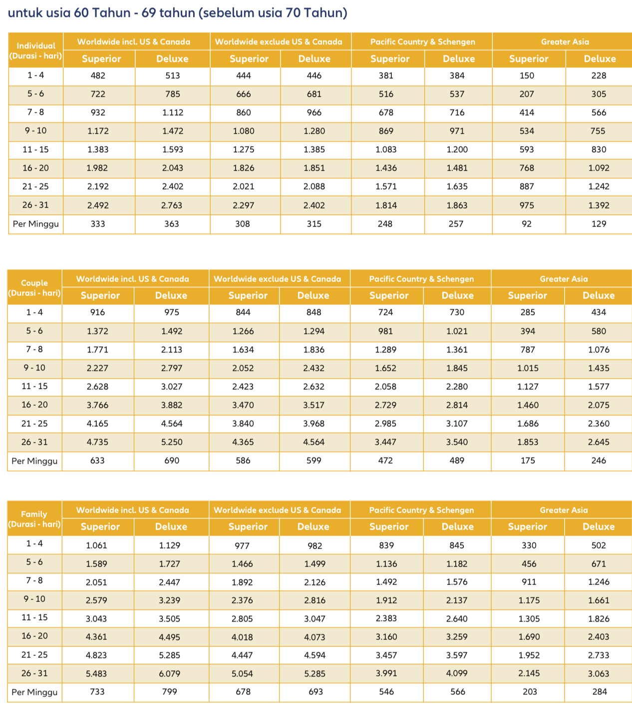 Tabel Premi Asuransi Perjalanan Allianz/Travel Insurance Allianz New TravelPRO