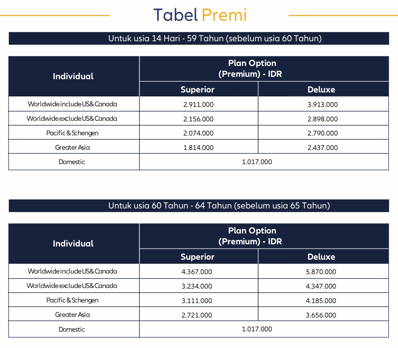 Semua biaya premi asuransi yang tertera di tabel tersebut, belum ditambahkan Biaya Polis & Materai sebesar Rp. 10.000.