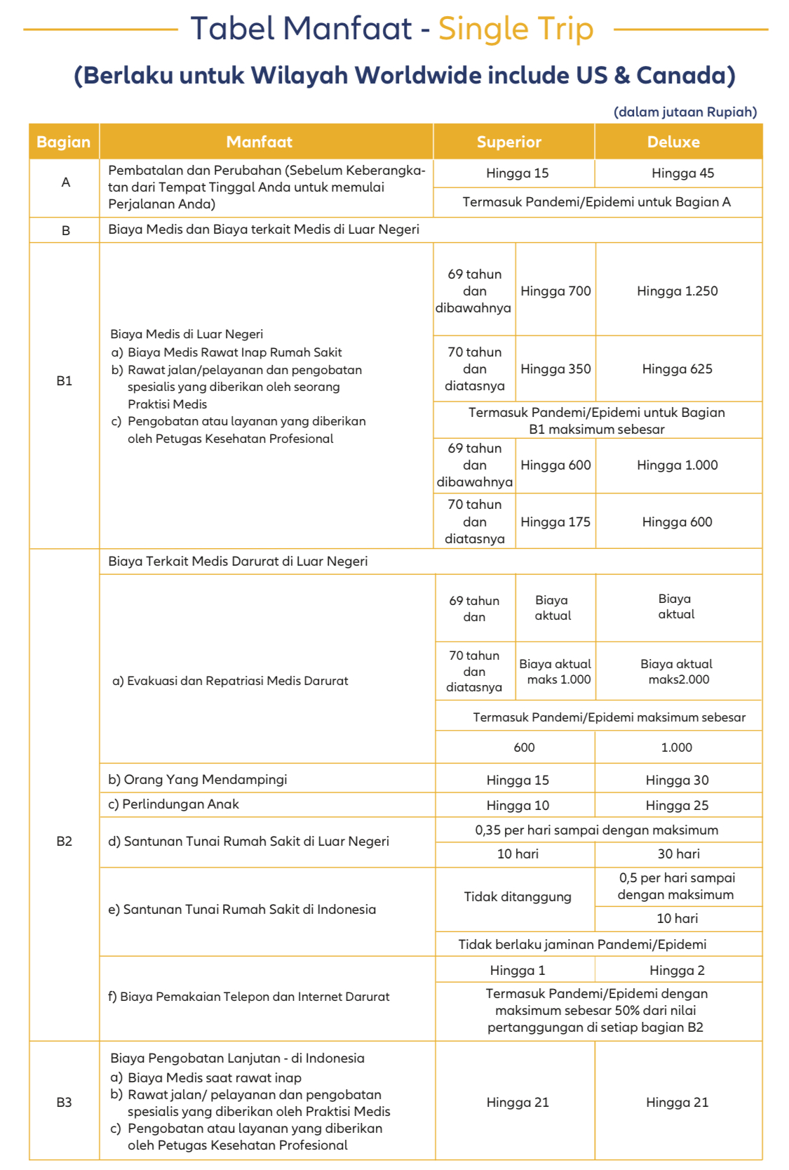Tabel Manfaat Asuransi Perjalanan / Travel Insurance